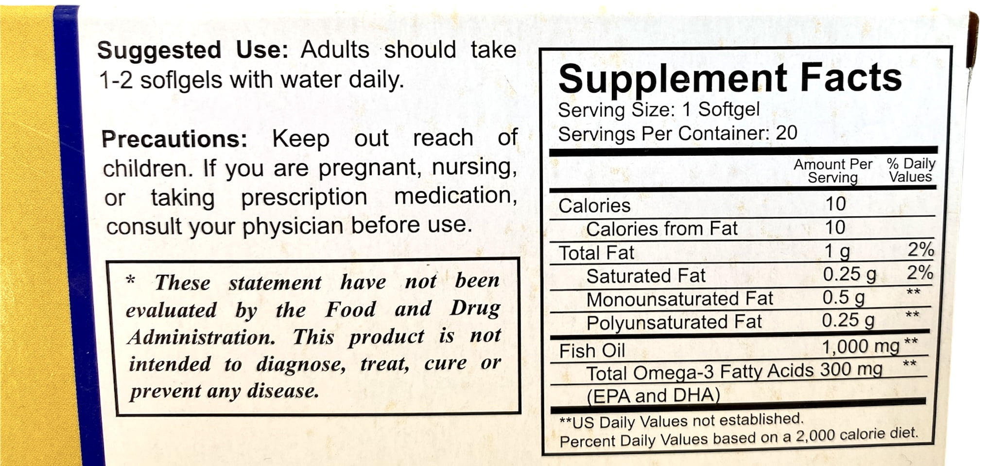Fish Oil 300 Mg Omega 3 Dietary Supplement 20 Softgels 1000 Mg Gold Quality Product Of I P D Usa Walmart Com